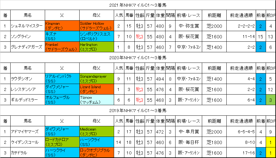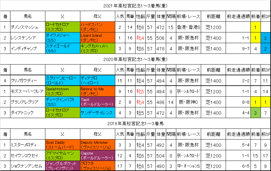 阪神で行われた昨年の上位馬は480kg以上で、京都よりも重い馬優勢だった印象。